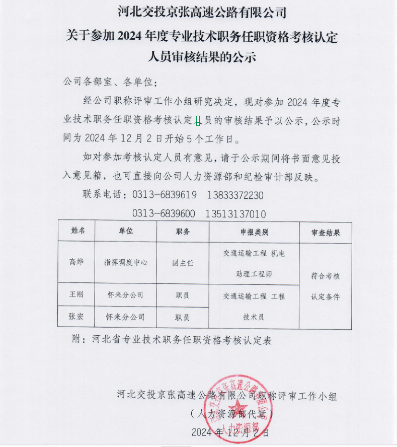 關(guān)于參加2024年度專(zhuān)業(yè)技術(shù)職務(wù)任職資格考核認定人員審核結果的公示